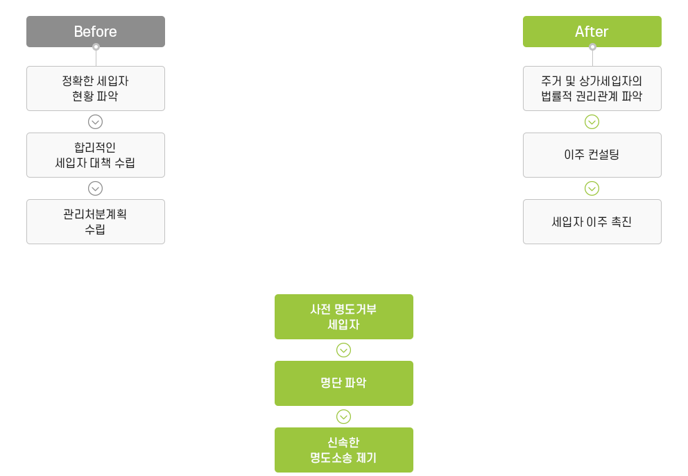 관리처분계획인가 후 조합에서는 조합원이주/주거세입자/영업세입자/현금청산자 이주 등을 체계적인 관리에 따라 이주기간 내에 이주를 완료하여 조합업무의 정상화에 이바지하는 업무의 종결을 의미합니다.